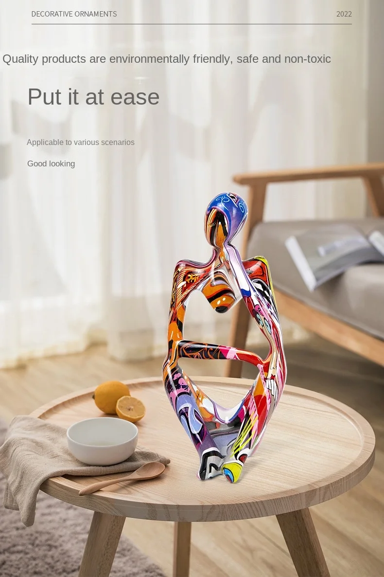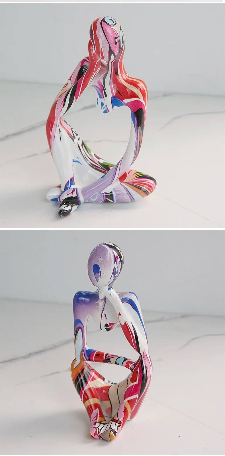 Thinker Statue Abstract Style: Thinker Figurine Abstract Colorful