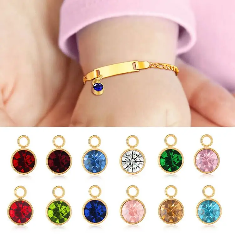 data, logotipo, imagem na pulseira.Esta pulseira de pedra de nascimento com corrente de elos figaro com comprimento banhado a ouro é de 12 cm com